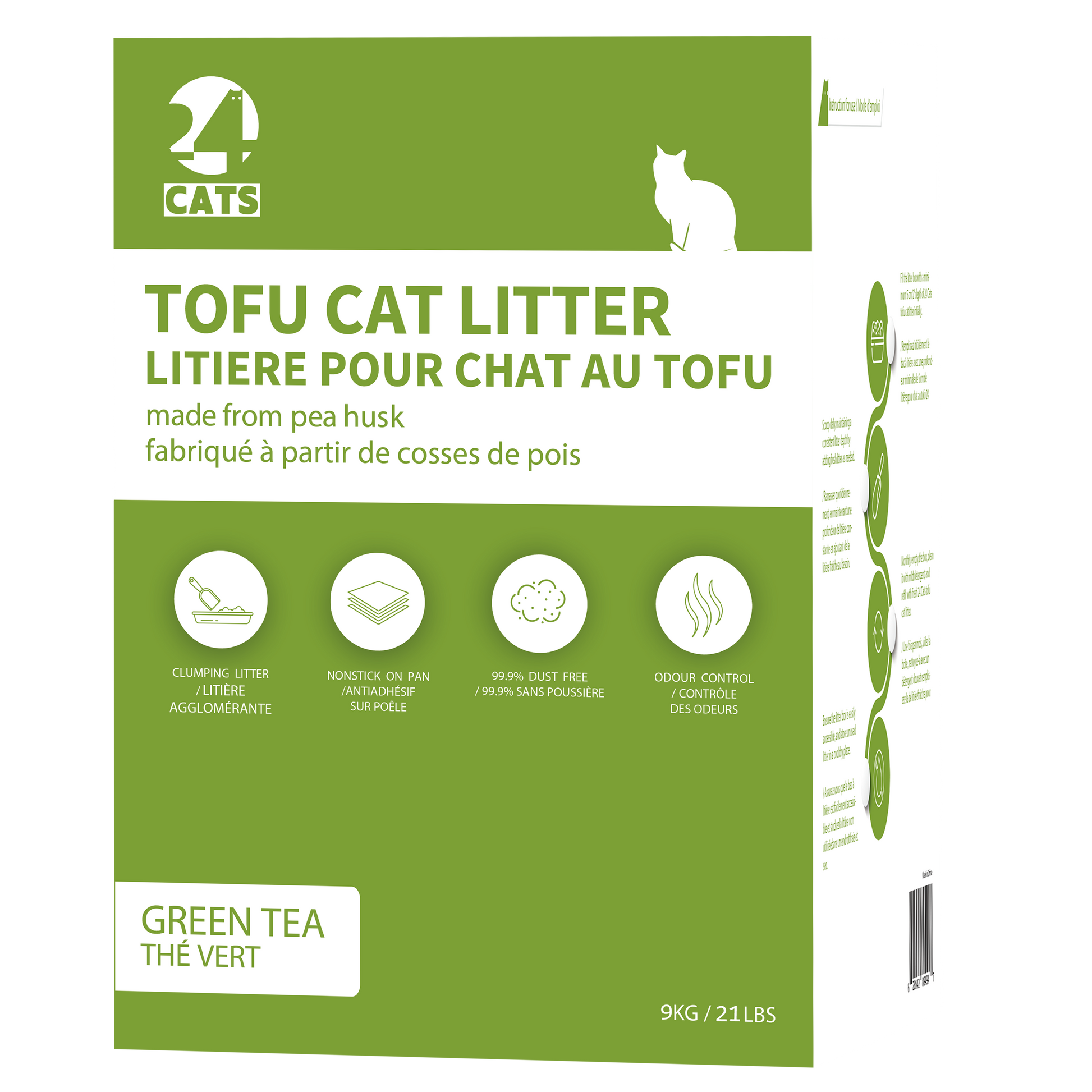 2mm Bigger Granules Less Dust - 24 CATS Pea Husks Natural Tofu Cat Litter 9KG/19.8lbs - Green Tea/Quick Clumping, Odor Control & Dust Free